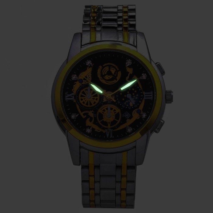 Часы наручные кварцевые мужские, d-4.4 см, ремешок l-26 см, 3 АТМ, светящиеся