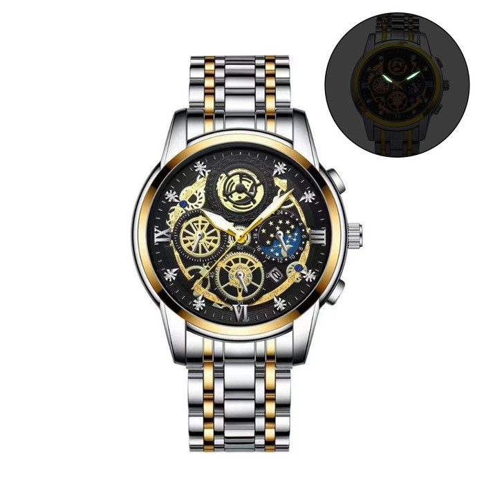 Часы мужские наручные металлические кварцевые "IIK Collection", с календарем, d-4.8 см