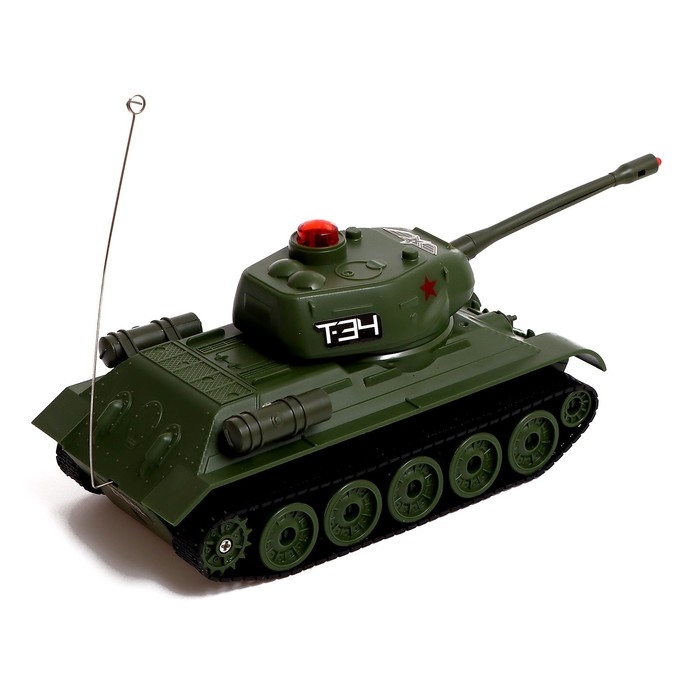 Танк радиоуправляемый Т34, работает от аккумулятора, свет и звук, цвет зелёный