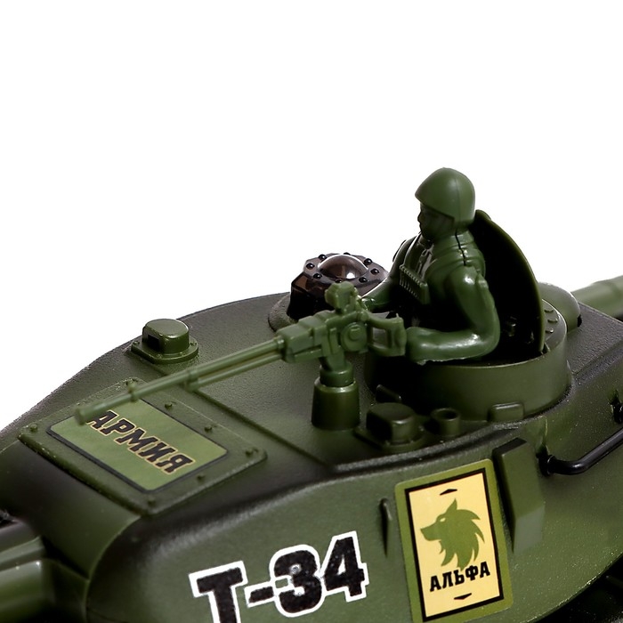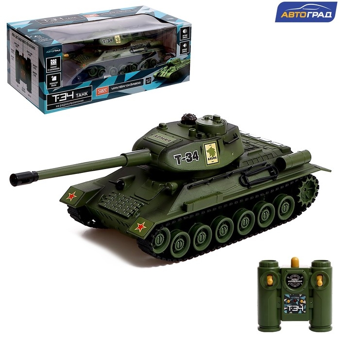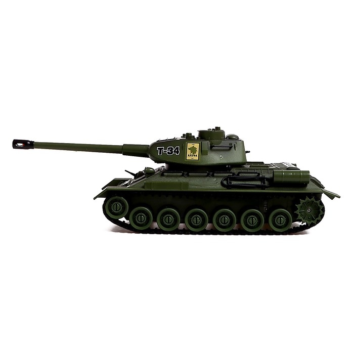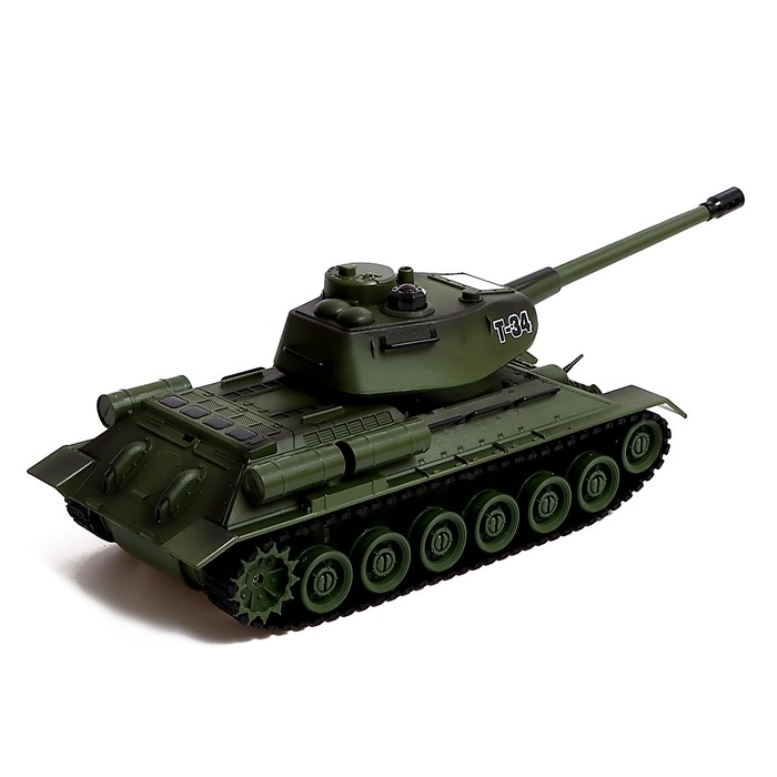Танк радиоуправляемый Т34, работает от аккумулятора, свет и звук, цвет зелёный