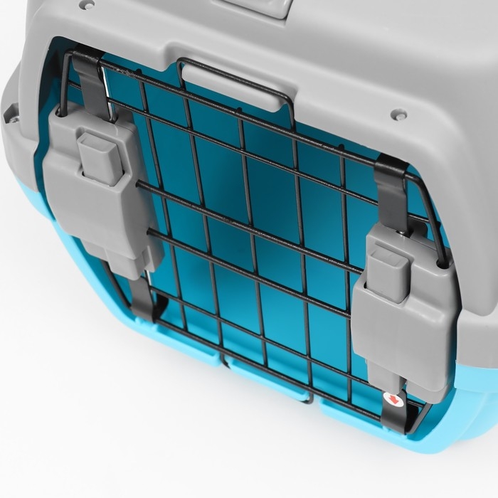 Металлическая дверца имеет удобные замки, расположенные с двух сторон, что обеспечивает надежное закрепление и предотвращает возможные побеги животного во время перевозки.