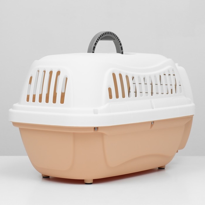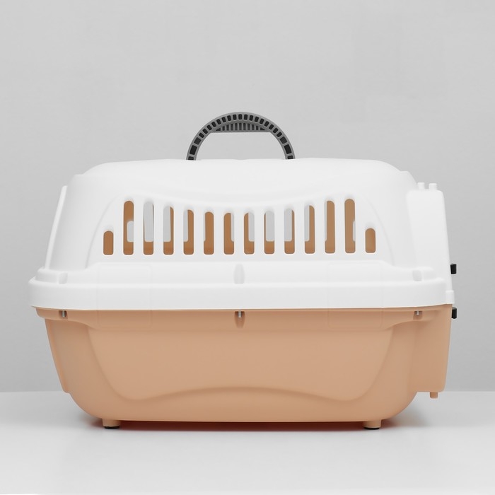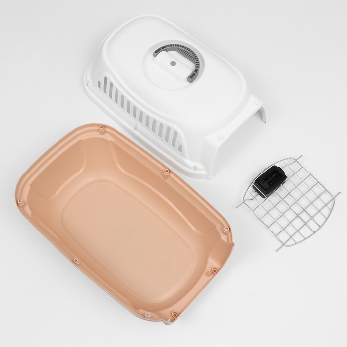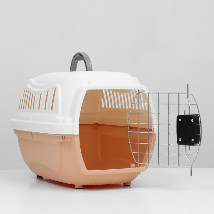 Переноска для животных пластиковая с металлической дверью 47х32,5х30 см, вес до 9 кг, бежевая 934336