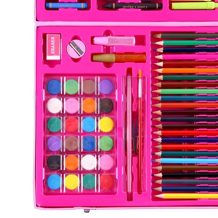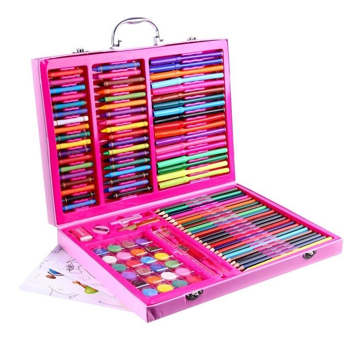 Такой набор станет настоящим подарком для художника. Рисуйте, создавайте шедевры с помощью маркеров, восковых мелков, красок и многого другого!