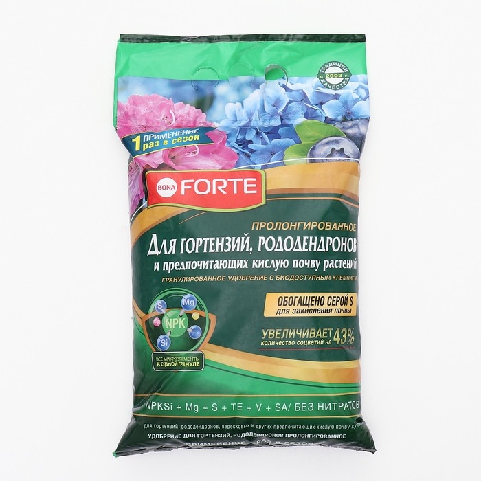 Удобрение Bona Forte для гортензий, с биодоступным кремнием, гранулы, пакет, 2,5 кг