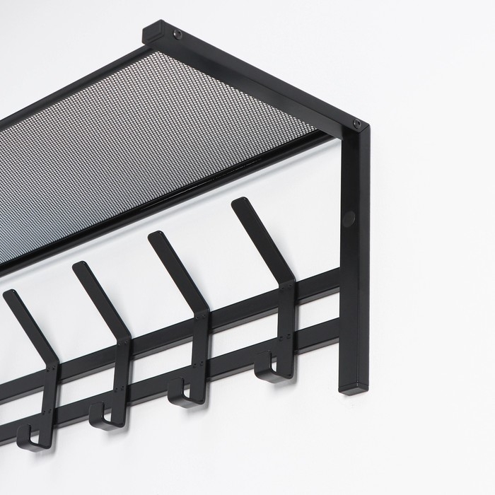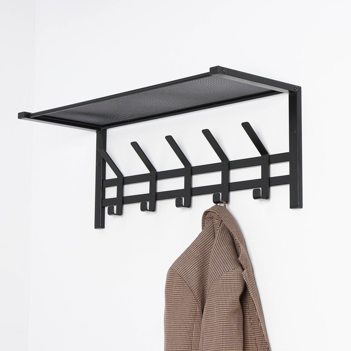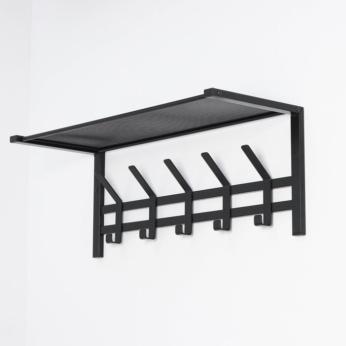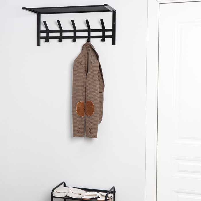 Вешалка с полкой «Торонто 21», 67×27×27 см, 5 двойных крючков, цвет чёрный