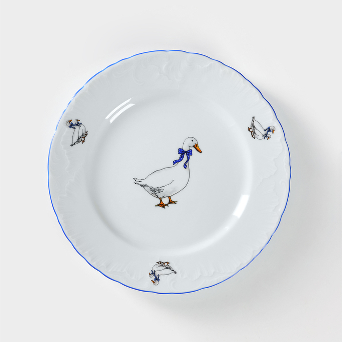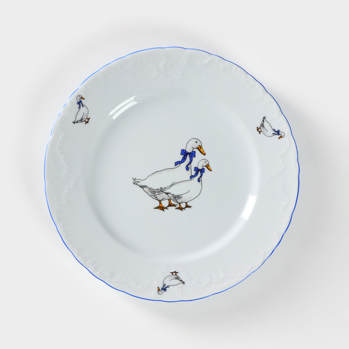Тарелка «Рококо. Гуси», d=25 см, белая, фарфор, МИКС