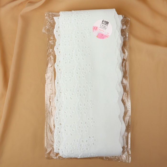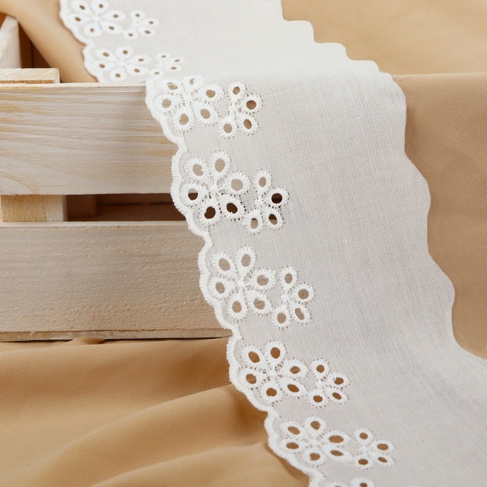 Кружево шитьё, 75 мм × 13 ± 1 м, цвет белый