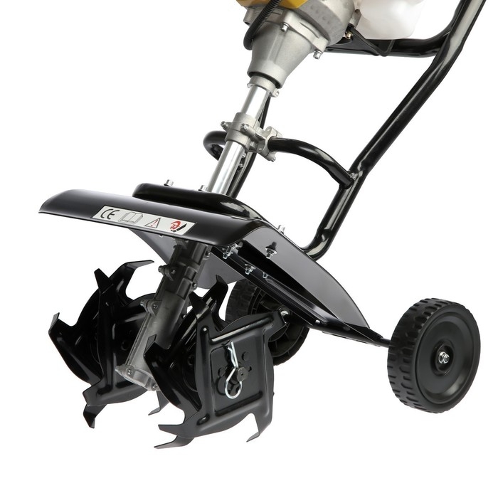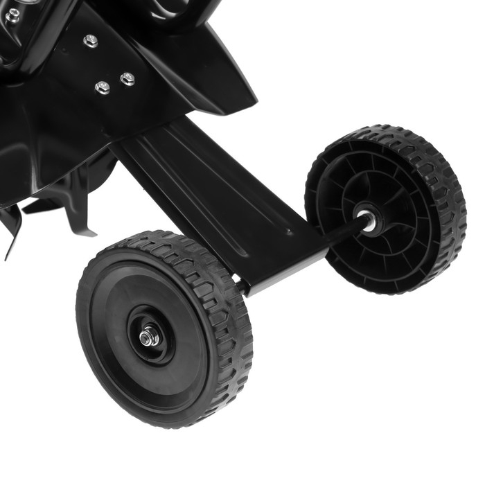 Металлические фрезы позволят быстрее и эффективнее вспахивать почву. Транспортные колёса обеспечат легкое перемещение агрегата по участку. Корпус культиватора оснащен защитным кожухом.