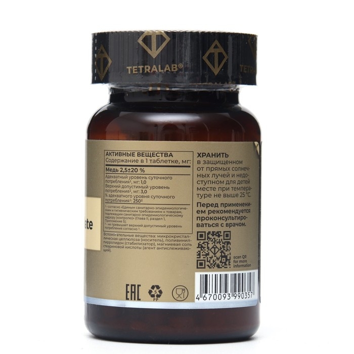 Медь хелат TETRALAB, 90 таблеток по 100 мг