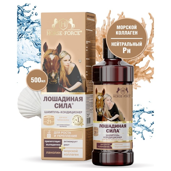 Шампунь-кондиционер Лошадиная сила с коллагеном и ланолином, 500 мл