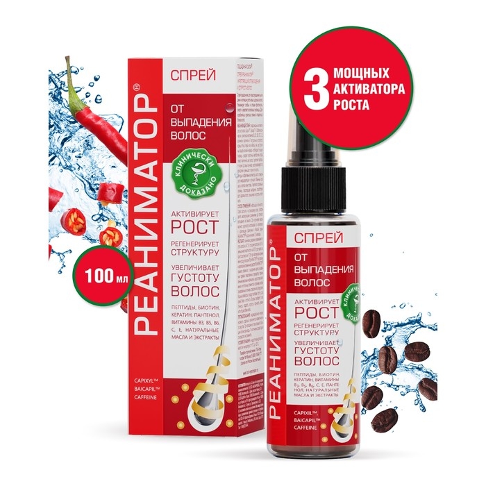 Спрей Реаниматор Лошадиная сила укрепляющий от выпадения и для роста волос, 100 мл