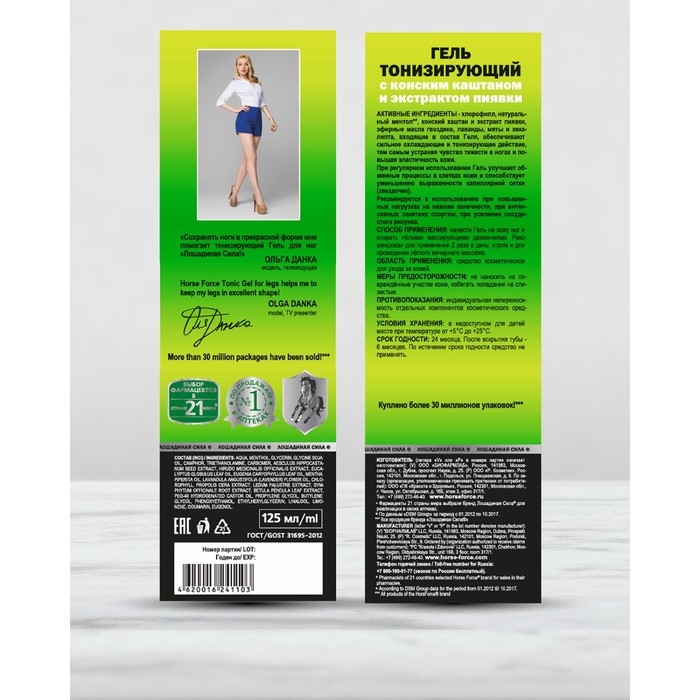 Гель тонизирующий Лошадинная сила с конским каштаном и экстрактом пиявки способствует: