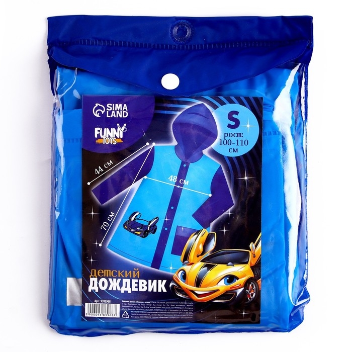 Дождевик детский «Машинка», размер S (100-110 см)