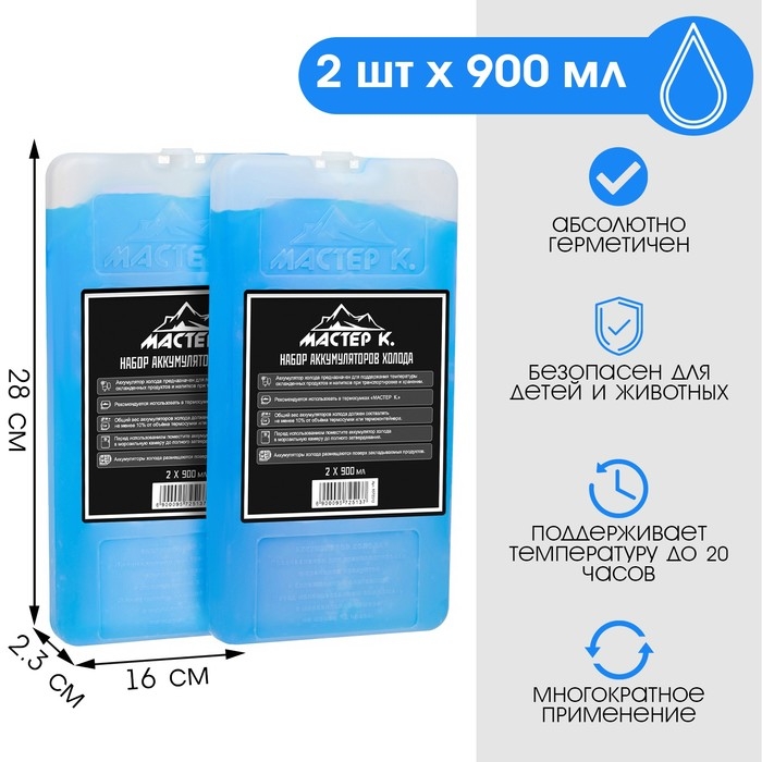 Набор аккумуляторов холода - гелевый хладоэлемент для термосумки "Мастер К.", 2 шт по 900 мл