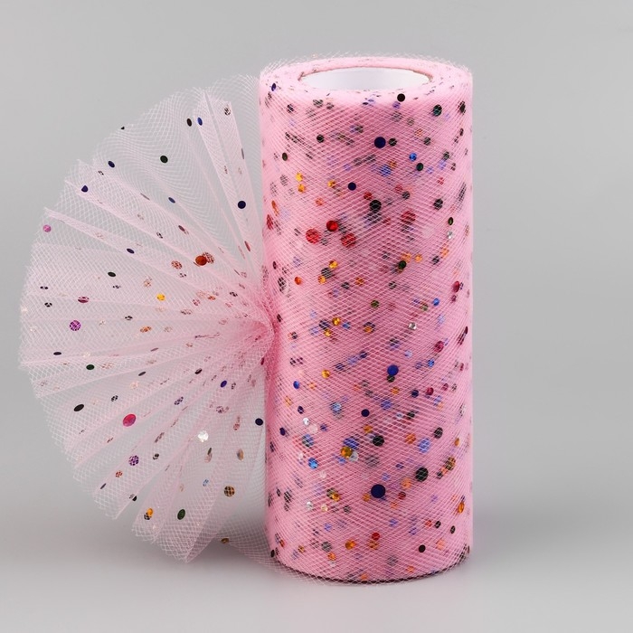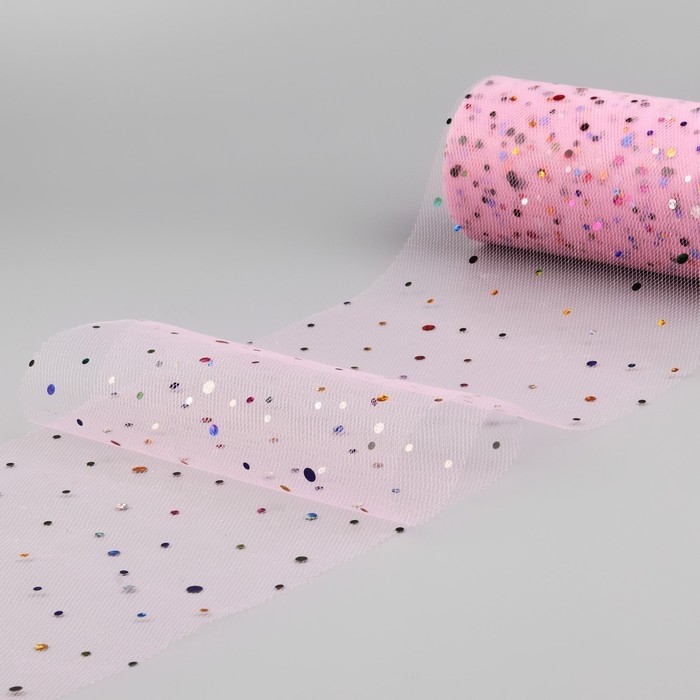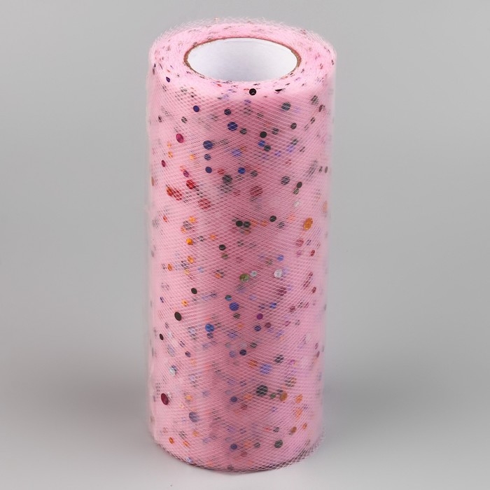 Фатин с разноцветными блёстками, 15 см, 11 ± 1 г/кв.м, 23 ± 1 м, цвет розовый №8