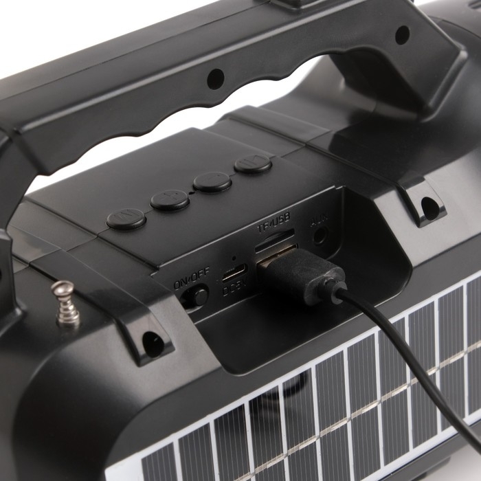 Фонарь аккумуляторный, 10 Вт, 1200 мАч, Bluetooth, AUX, USB, радио, на солнечной батарее