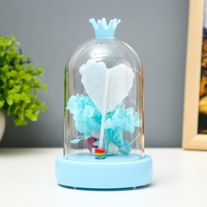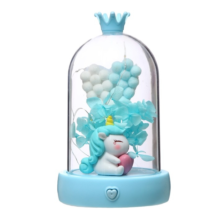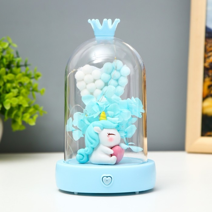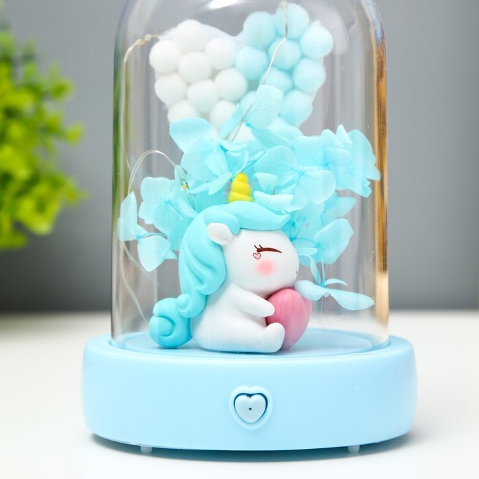 Ночник музыкальный колба "Единорог" LED 3хААА голубой 9,5х9,5х16 см