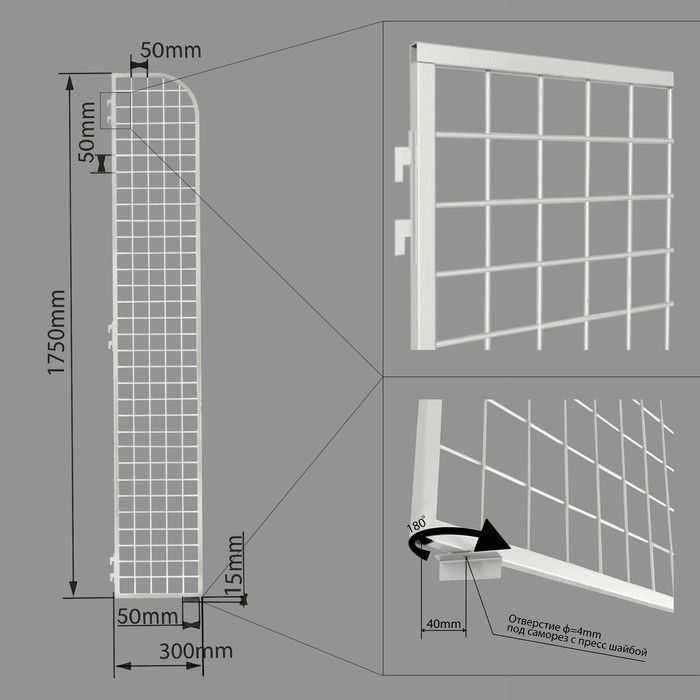 Стенка сетка боковая, 1750×400 мм, цвет белый