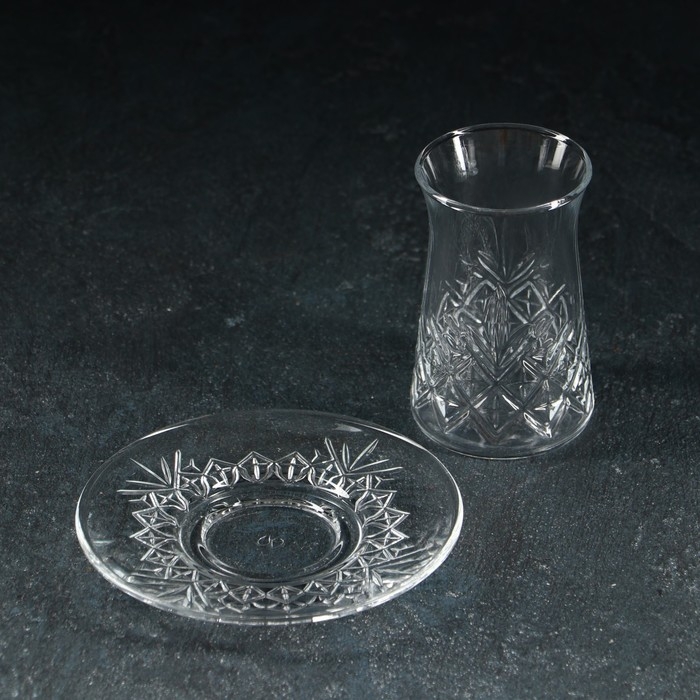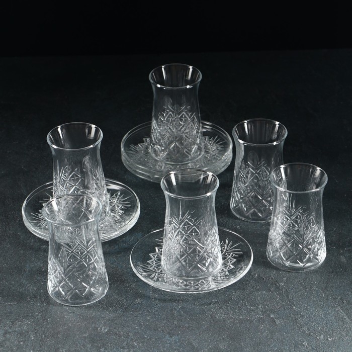Набор чайный стеклянный, 12 предметов: 6 стаканов 160 мл, 6 блюдец d=12,3 см