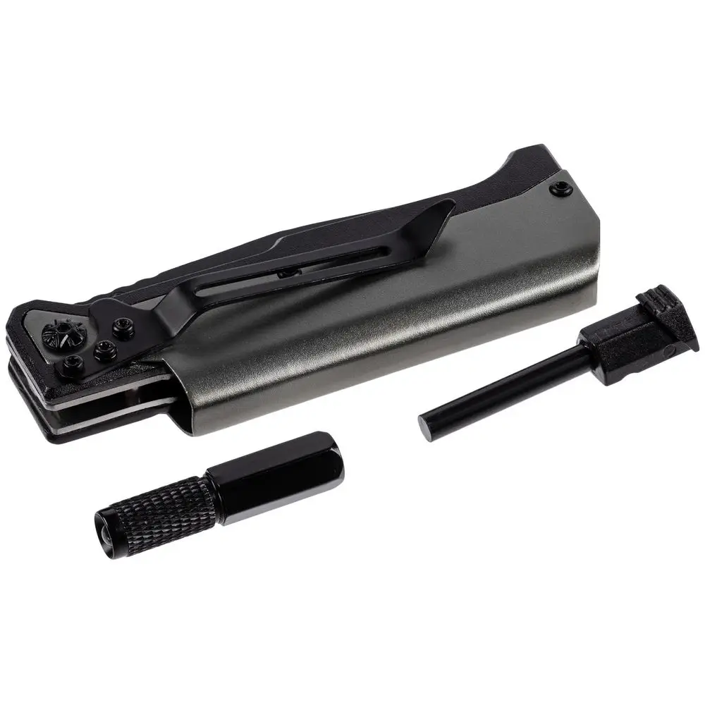Ster в переводе с норвежского — «лесник». Набор Ster — отличный подарок тому, кто каменным джунглям предпочитает настоящую дикую тайгу. В любой сложной ситуации на помощь придут острое лезвие, фонарик, чтобы сориентироваться в темноте, и огниво, позволяющее разжечь костер без спичек.