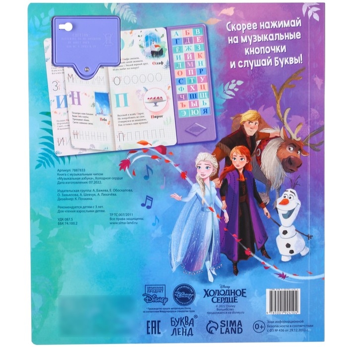 Книга с музыкальным чипом + маркер «Музыкальная азбука», 18 стр., Холодное сердце