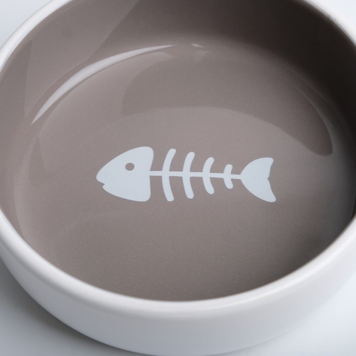 Миска керамическая "Рыбные кость" 300 мл 13,4 x 4 cм, серо-белая