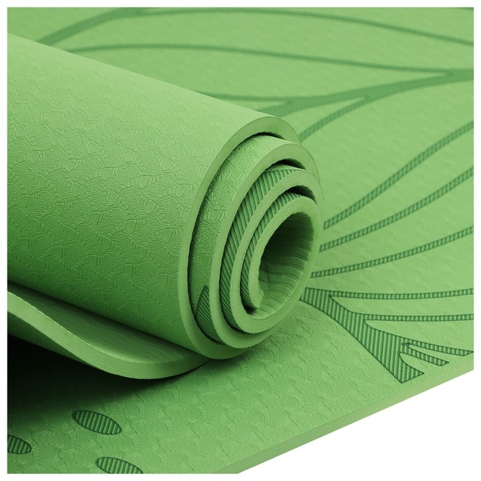 Коврик подходит для занятий йогой и фитнесом дома и в спортивных залах. Помогает в выполнении асан или других упражнений. Смягчает упор тела на твёрдую поверхность. Сохраняет форму после выполнения упражнений.
