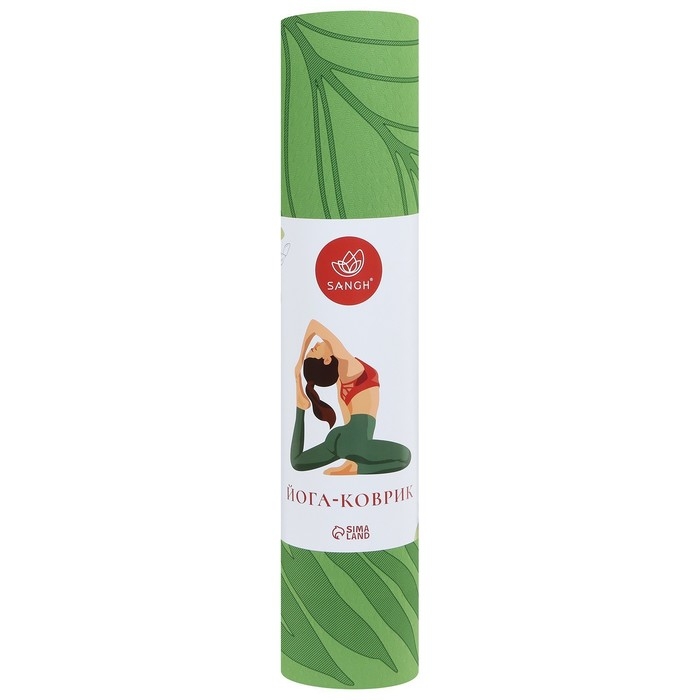 Коврик для йоги Sangh Tropics, 183х61х0,6 см, цвет зелёный