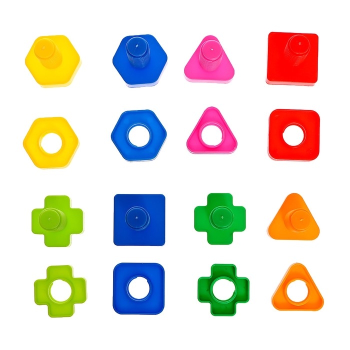 - Детали отличаются цветом и формой: квадратные, крестовые, треугольные и шестиугольные.