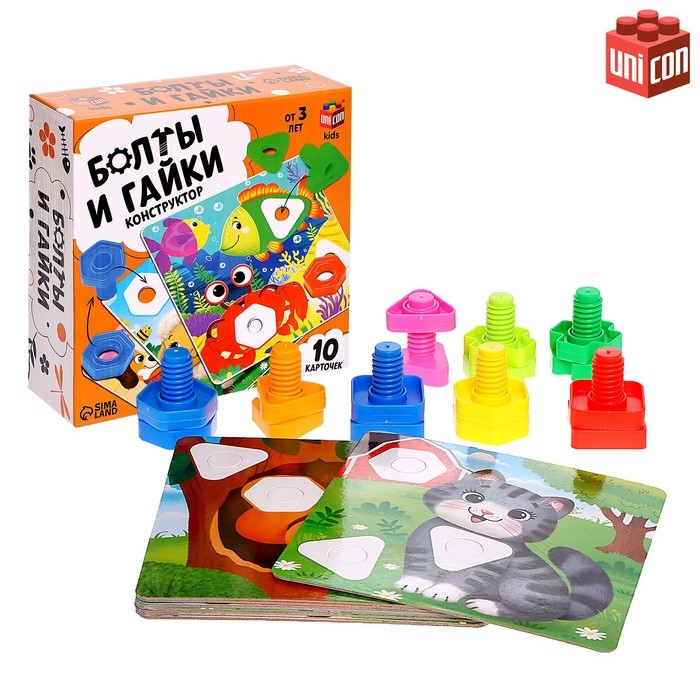 Конструктор «Болты и гайки», 10 карточек, зверята