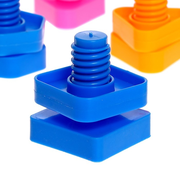В процессе игры с винтовым конструктором «Болты и гайки» ребёнок разовьёт мелкую моторику, воображение и творческие способности. А также научится закручивать и откручивать гайки, что потренирует щипковый захват. Это умение в будущем пригодится при освоении рисования, письма и выполнении различных бытовых задач.