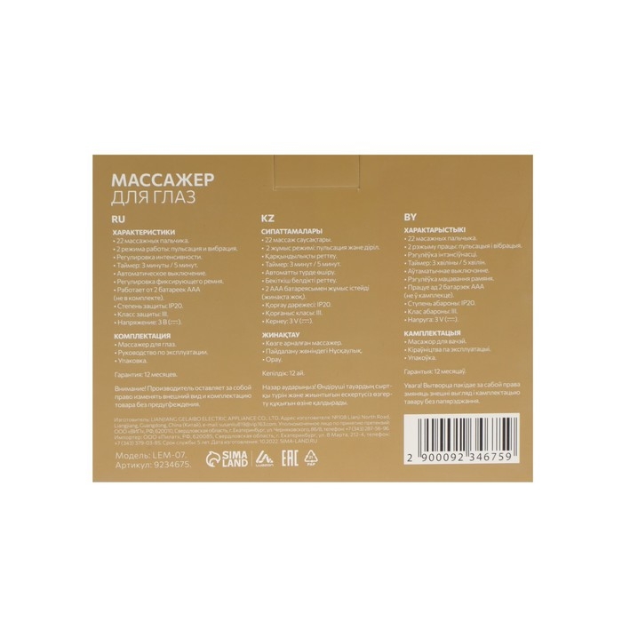 Массажёр для глаз Luazon LEM-07 поможет снять напряжение с глаз, понизить внутриглазное давление и улучшить кровоснабжение глазного яблока и мышц, снять гиперчувствительность глаз к яркому свету, уменьшить симптомы стресса и усталости. Массажёр для глаз точно соответствует форме окологлазничной области и месторасположению акупунктурных точек.