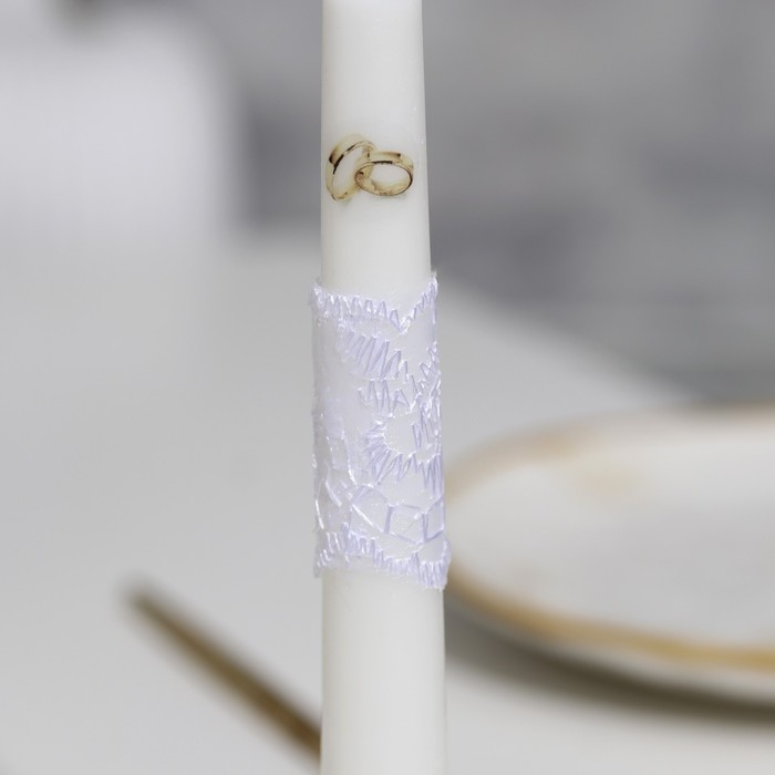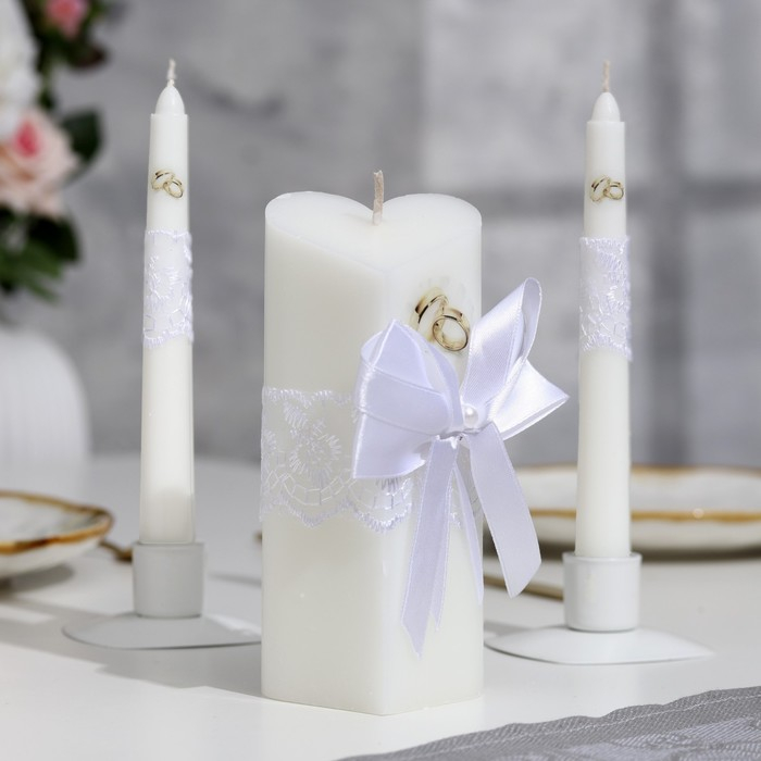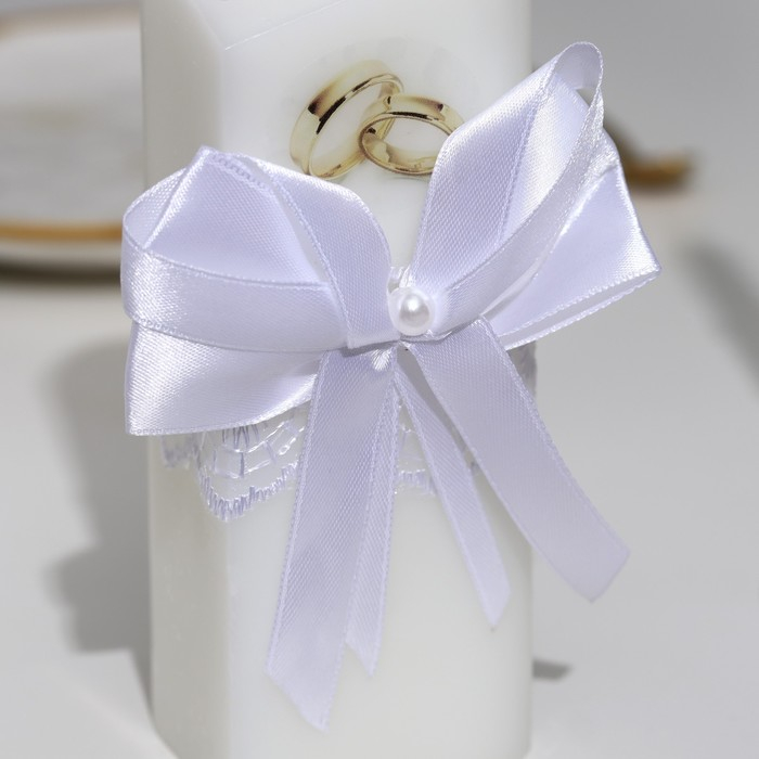 Набор свечей "Кружевной с бантиком" белый: домашний очаг 6,8х15см, родительские 1,8х17,5см