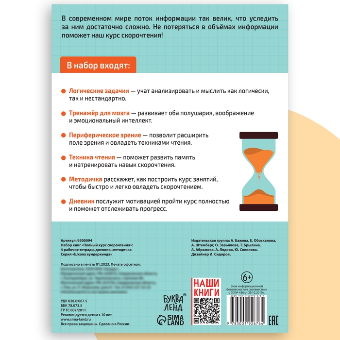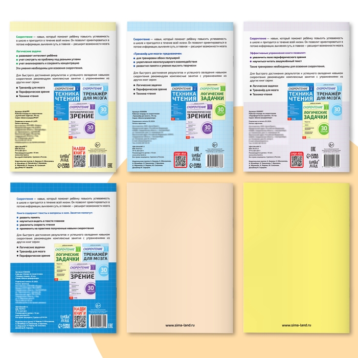 Набор книг «Полный курс скорочтения» : 4 рабочие тетради, дневник, методичка