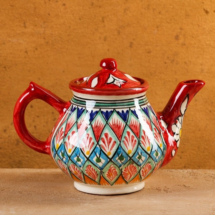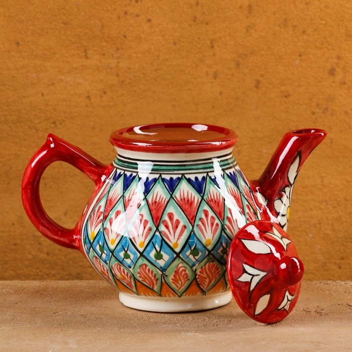 Чайник Риштанская Керамика "Узоры", 0,8 мл, красный