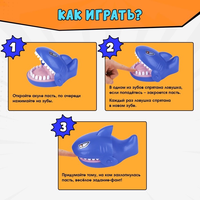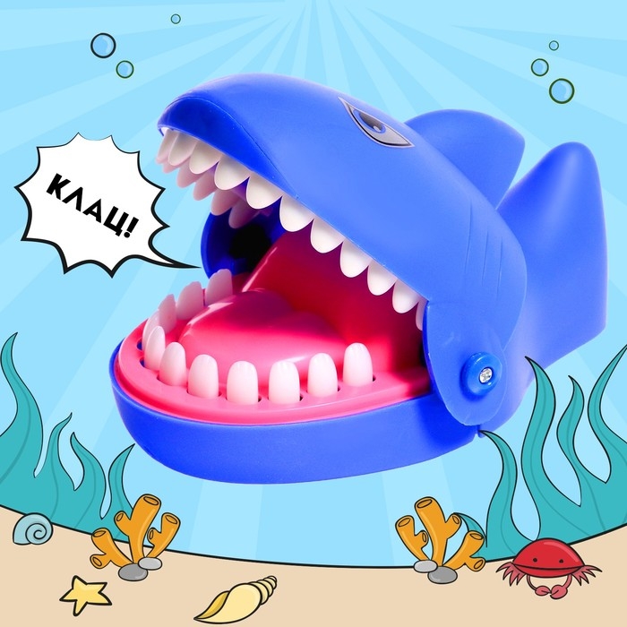 - В одном из зубов акулы спрятана ловушка. Если игрок нажмёт на неё, рот хищной рыбы захлопнется!