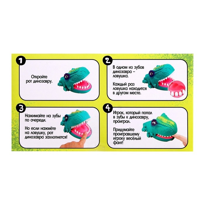 Всегда будьте начеку с настольной игрой «Не буди Дино!», ведь динозавры ошибок не прощают! Пересчитайте зубы ящеру, пока он не проснулся!
