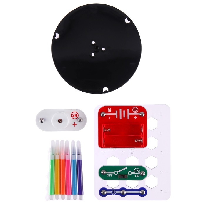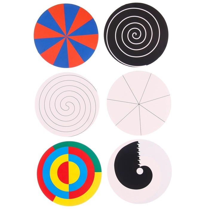- Комплект включает 6 двусторонних сменных дисков с узорами для создания различных оптических иллюзий.