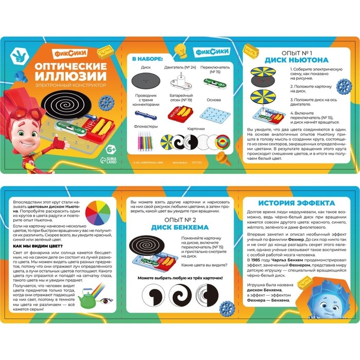 Набор для опытов Фиксики «Оптические иллюзии» поможет развить мелкую моторику, воображение, логическое мышление и интерес к науке.