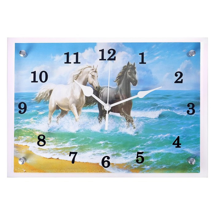Часы-картина настенные, интерьерные "Лошади в море", бесшумные, 25 х 35 см
