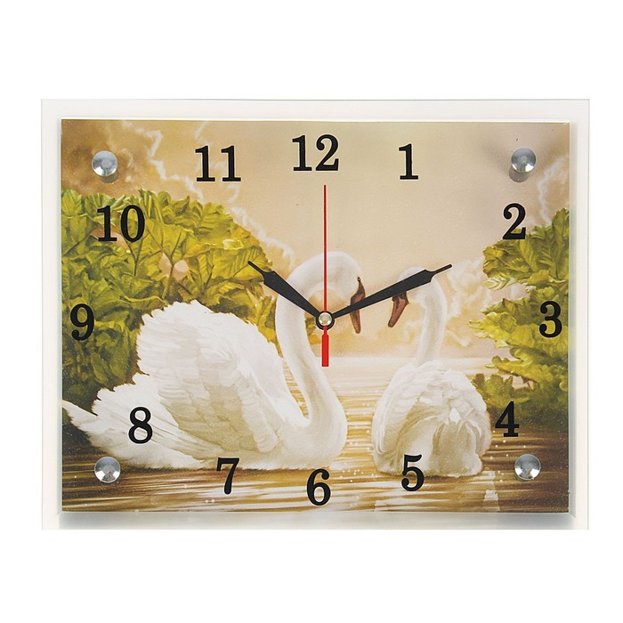 Часы-картина настенные, интерьерные "Лебеди", бесшумные, 25 х 20 см