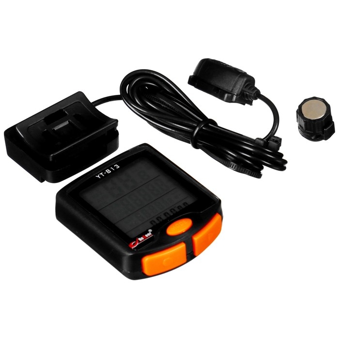 Велокомпьютер проводной, цвет чёрный/оранжевый
