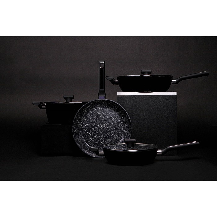 Сковорода Magistro Warrior, d=28 см, h=7,5 см, со стеклянной крышкой, ручка soft-touch, антипригарное покрытие, индукция, цвет чёрный