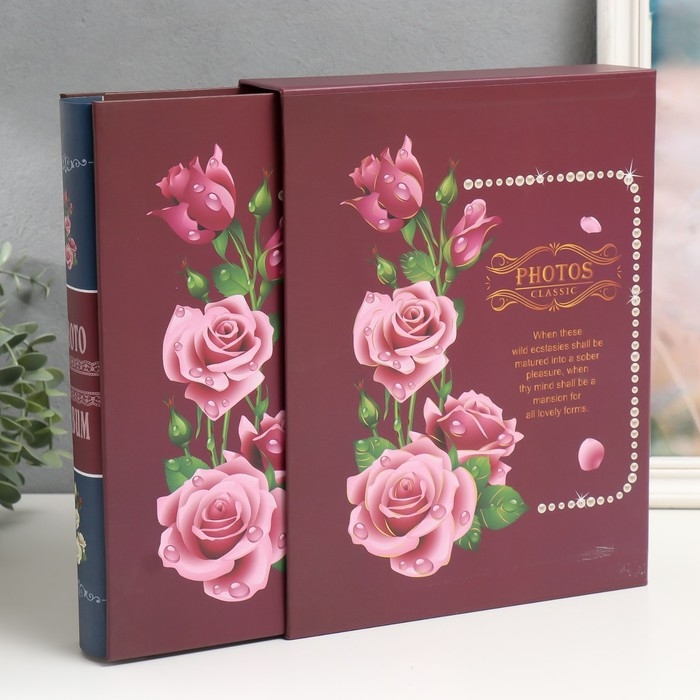 Фотоальбом на 200 фото 13х18 см "Веточка с розами" в коробке МИКС 29,5х23х5,5 см