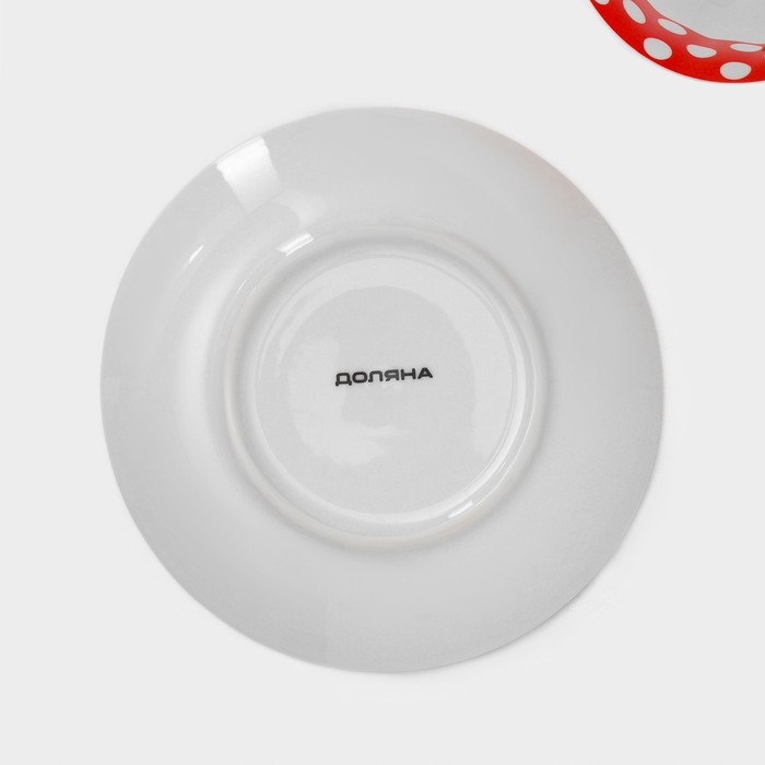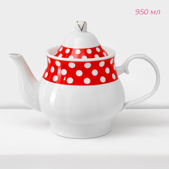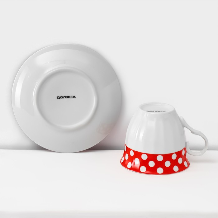 Сервиз чайный керамический на металлической подставке Доляна «Горох»,13 предметов на подставке: 6 чашек 210 мл, 6 блюдец - d=14 см, чайник 950 мл, цвет красный