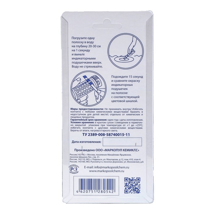 Пултестер рН/ Cl /щелочность, 20 тест полосок