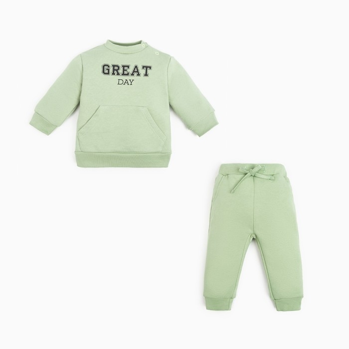 Костюм: толстовка и брюки Крошка Я Street style, рост 62-68 см, зелёный