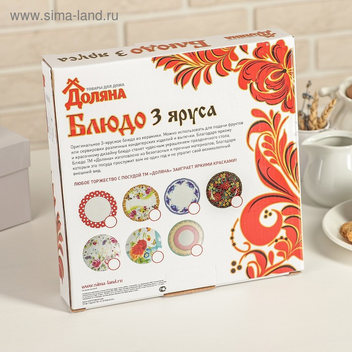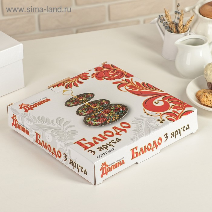 Блюдо 3-х ярусное Доляна «Хохлома», 15/18/23 см