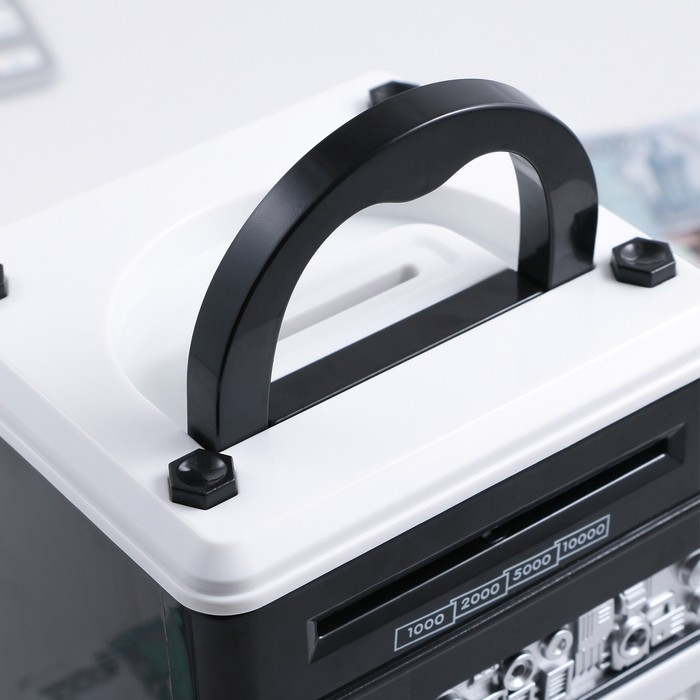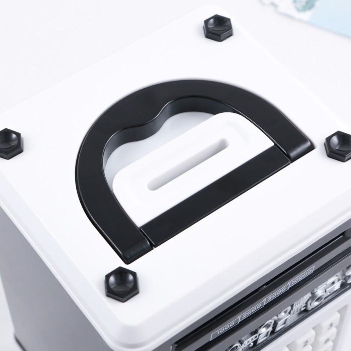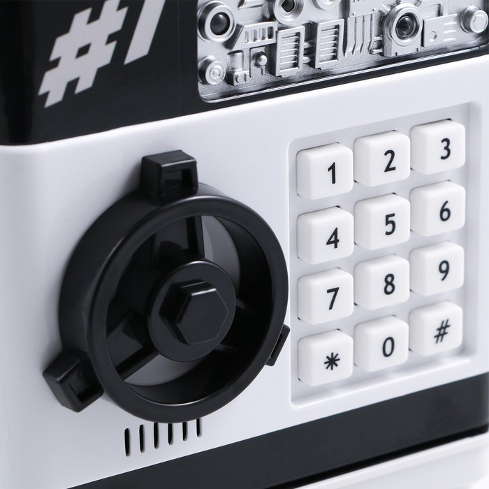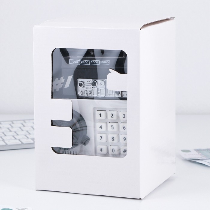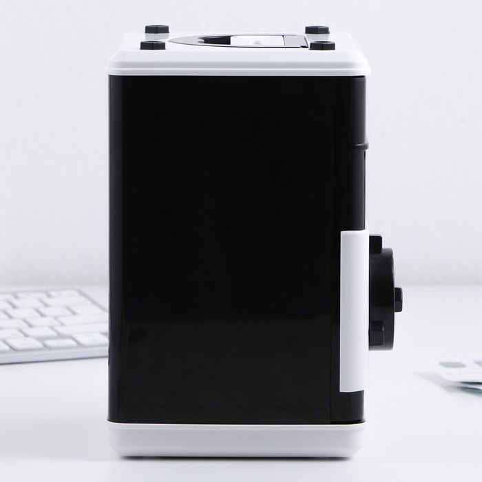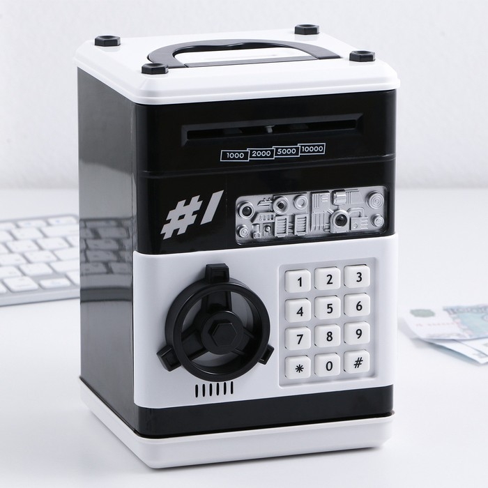 Электронная копилка-сейф для денег работает от батареек, принимает монеты и бумажные купюры. Уникальная музыкальная копилка - это копия сейфа с кодовым замком и электронным купюроприемником, как в банкомате, можно закидывать монеты или же вставлять купюры. Открыть может только человек, который знает пин-код сейфа. Имеет музыкальное сопровождение. По умолчанию в копилке установлен ПИН код: "0000". Для смены ПИН кода необходимо открыть дверцу вводом кода 0000, дождаться, пока светодиод погаснет, потом нажать и удерживать кнопку * 10 секунд, далее ввести новый 4-значный код и нажать #, после чего отпустить кнопку *. Нужно сразу проверить, открывается ли копилка-сейф с новым кодом.Если купюры плохо входят или электронный замок не работает, нужно поменять батарейки, желательно использовать батарейки высокого качества (3 батарейки типа АА).