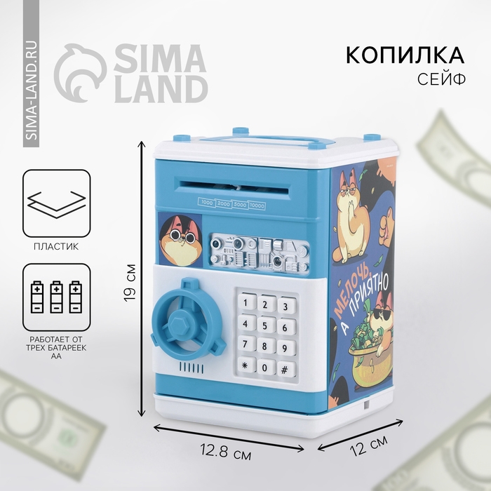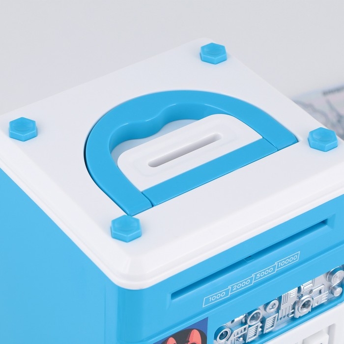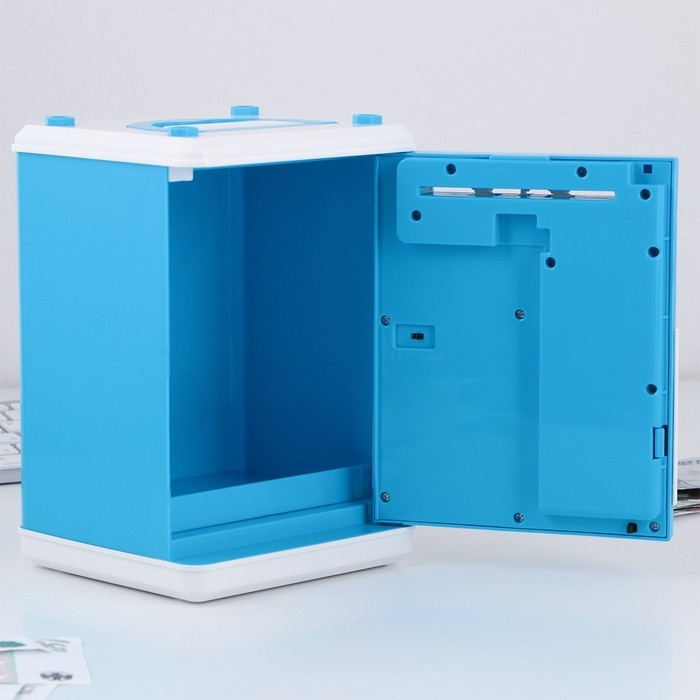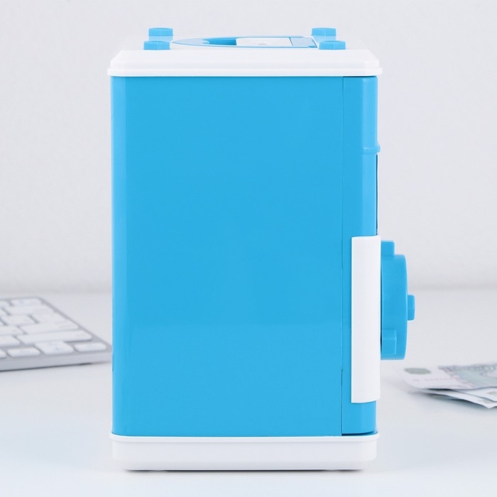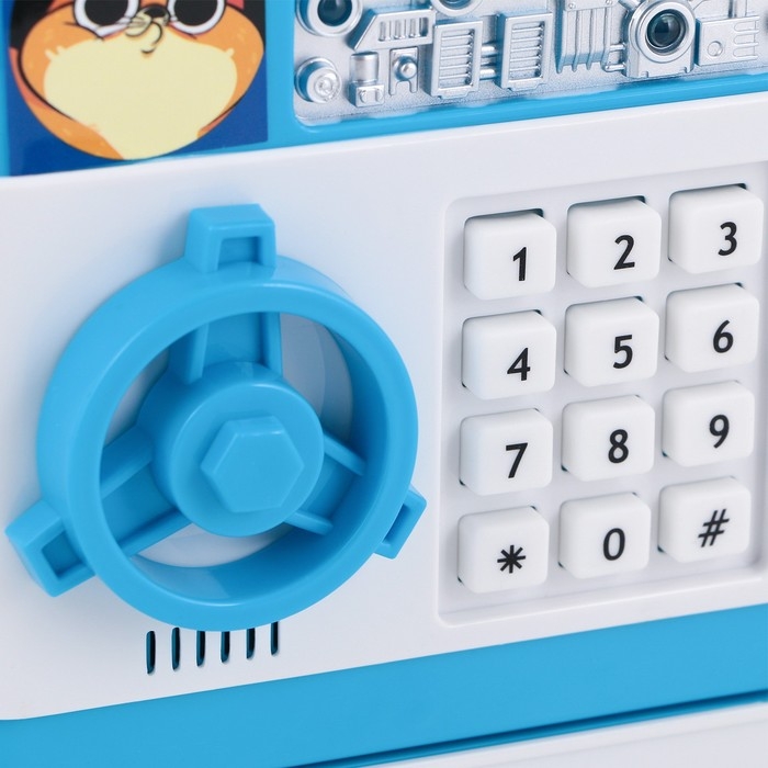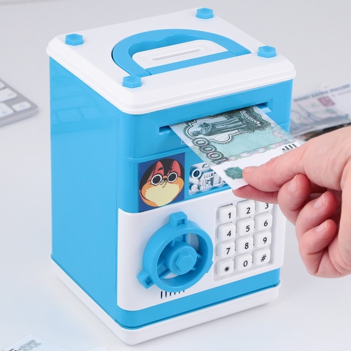 Электронная копилка-сейф для денег работает от батареек, принимает монеты и бумажные купюры. Уникальная музыкальная копилка - это копия сейфа с кодовым замком и электронным купюроприемником, как в банкомате, можно закидывать монеты или же вставлять купюры. Открыть может только человек, который знает пин-код сейфа. Имеет музыкальное сопровождение. По умолчанию в копилке установлен ПИН код: "0000". Для смены ПИН кода необходимо открыть дверцу вводом кода 0000, дождаться, пока светодиод погаснет, потом нажать и удерживать кнопку * 10 секунд, далее ввести новый 4-значный код и нажать #, после чего отпустить кнопку *. Нужно сразу проверить, открывается ли копилка-сейф с новым кодом.Если купюры плохо входят или электронный замок не работает, нужно поменять батарейки, желательно использовать батарейки высокого качества (3 батарейки типа АА).